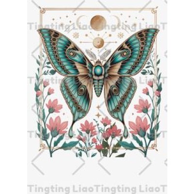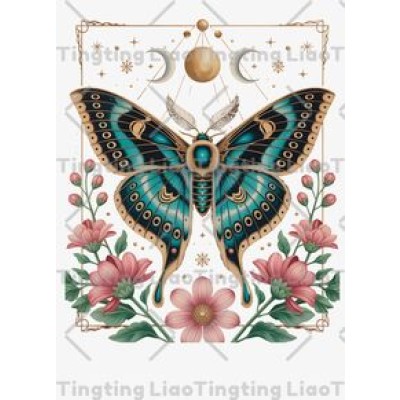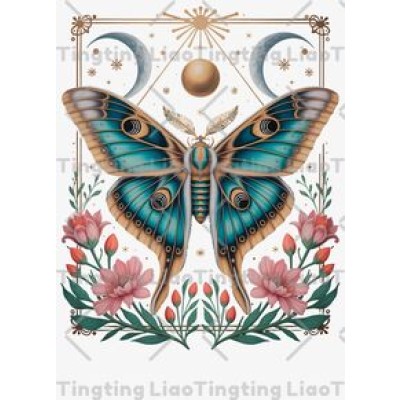 Moths,Flowers,Moon,Stars,Vintage Border,Illustration,Nature,Art,Mystery
