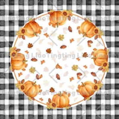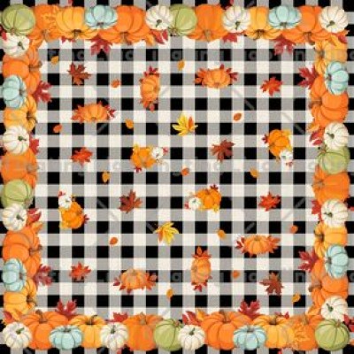 Autumn,Thanksgiving,Orange Pumpkin,Farm,Farmhouse,Country,Maple Leaf,Black And White Plaid