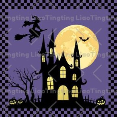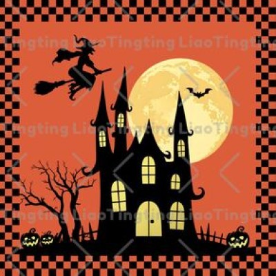 Halloween Theme,Plaid,Branch,Bat,Pumpkin Lantern,Castle,Witch,Moon Horror