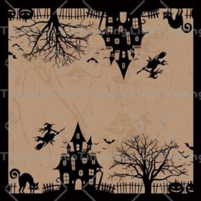 Halloween,Country Style,Brown Vintage Background,Pumpkin,Black Cat,Witch,Bat,Ghost,Castle