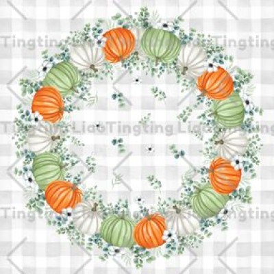 Thanksgiving,Autumn,Green Orange Pumpkin,Eucalyptus Leaf,Farm,Farmhouse,Country,Vintage,Gray Plaid