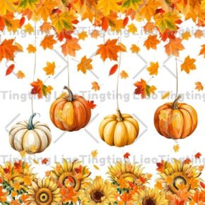 Thanksgiving Leaves,Maple Leaves,Dwarf,Sunflower,Watercolor,Farmhouse