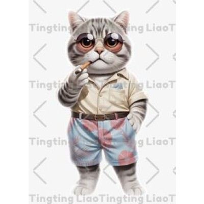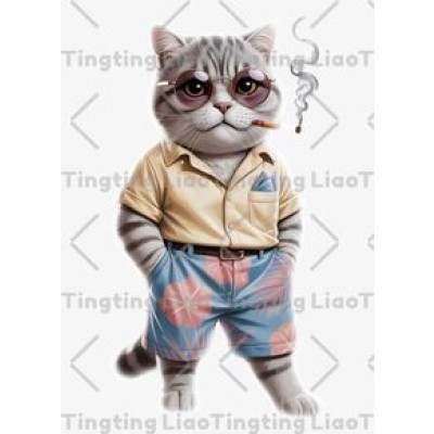 Sunglasses,Cat,Stand-up,Anthropomorphic,Shorts,Belt,Cigarette,Shirt