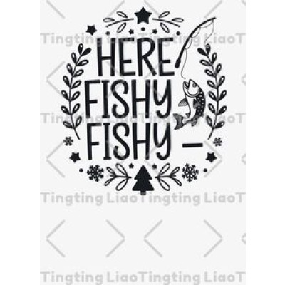 HERE FISHY FISHY,Fishing Theme,Summon Fish,Retro Trend,Fun Pattern