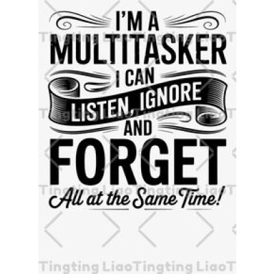 I'M A MULTITASKER I CAN LISTEN,IGNORE AND FORGET All At The Same Time!,Humorous Text,Multitasking Ridicule,Self-mockery,Creative Typesetting,Interesting Expression