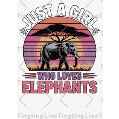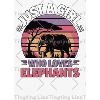 JUST A GIRL WHO LOVES ELEPHANTS,Elephant Theme,Love Elephant,Trend Style,Retro Sunset,Girl And Elephant