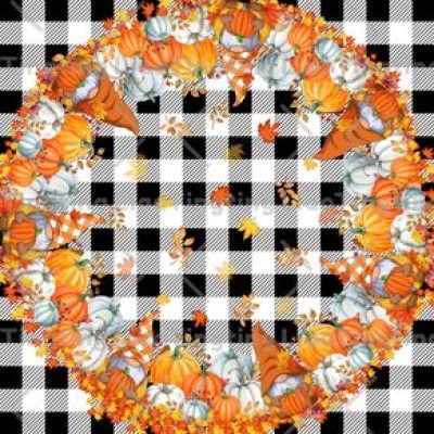 Autumn,Thanksgiving,Maple Leaf,Branch,Gnome,Pumpkin,Farm,Farmhouse,Country,Vintage,Black And White Plaid