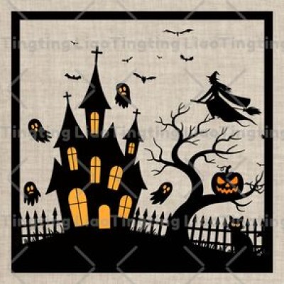 Halloween,Castle,Witch,Pumpkin Lantern,Retro