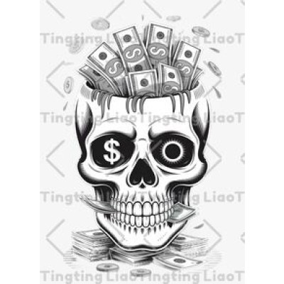 Money Skull,Classic Style,Retro Style,Classic Pattern,Black And White Color,Money Elements,Skull Image,Dark Atmosphere
