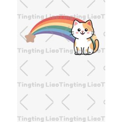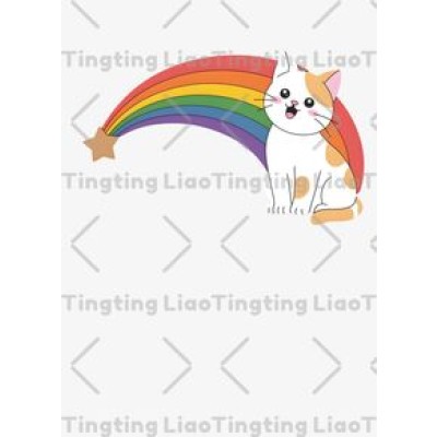 Cartoon,Fantasy,Rainbow,Cute,Cat,Animal,Stars