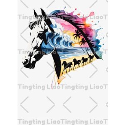 Horse,Coconut Tree,Sunrise,Sunset,Waves,Rosy Clouds