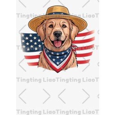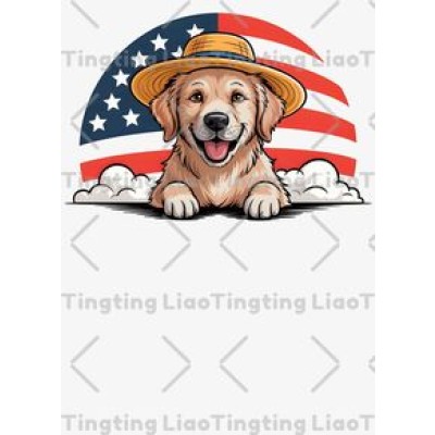 Labrador,Patriot,Cowboy Hat,American Flag,Cartoon,Puppy,White Clouds