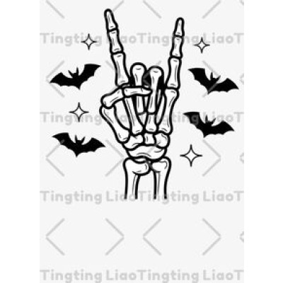 Halloween,Skeleton Hand,Rock Gesture,Skeleton,Small Bat,Stars