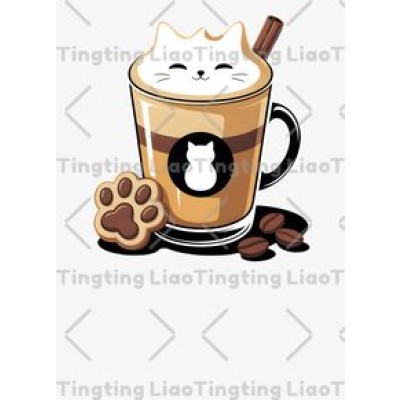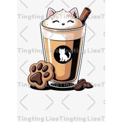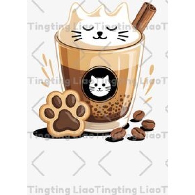 Cartoon,Cute,Cat,Coffee,Cat's Paw,Biscuits,Coffee Beans,Gourmet,Cute,Animal,Straw,Cup