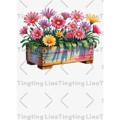 Wooden Flower Box,Flowers,Faded,African Daisy,Orchid Chrysanthemum,Budding,Flowers