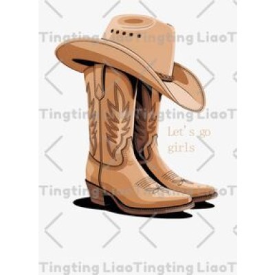 Cartoon,Western,Cowboy,Boots,Hat,Let's Go Girls