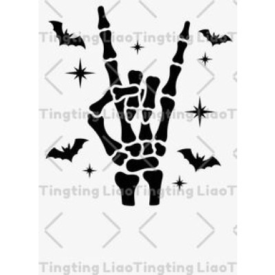 Halloween,Skeleton Hand,Rock Gesture,Skeleton,Small Bat,Stars