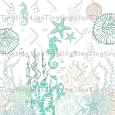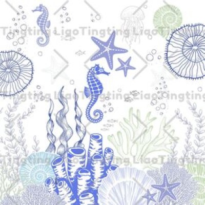 Ocean,Coral,Shell,Seahorse,Starfish,Art,Line,Texture,Abstract