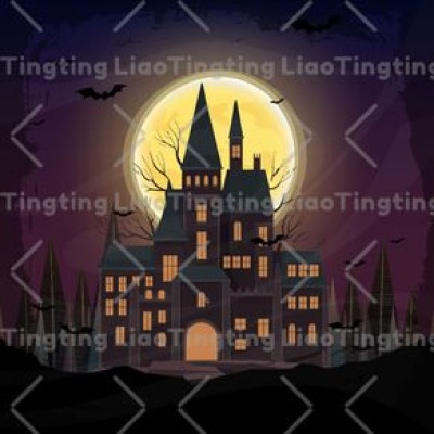 Halloween,Castle,Moonlight,Illustration,Bat,Cartoon Style