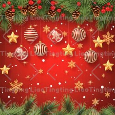 Christmas,Lamp Ball,Pine Branch,Five-pointed Star,Ribbon,Modern Style