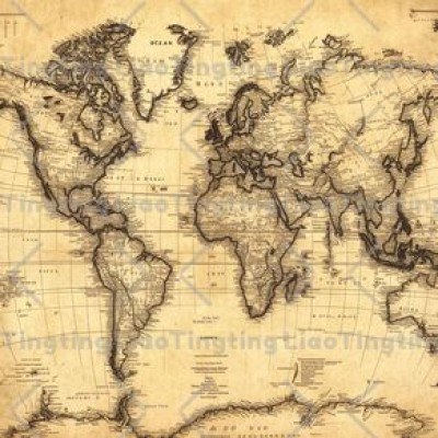 Map,World,Retro,Yellow,Plate,Line,Asia,North America,South America,Pacific,Africa