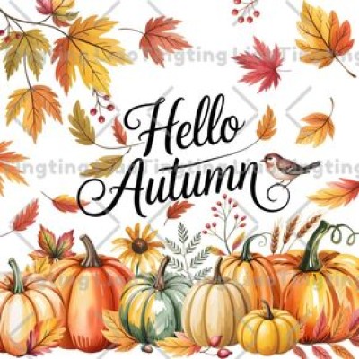 Autumn,Pumpkin,Thanksgiving,Watercolor,Leaf,Jam,Letter Hello Autumn