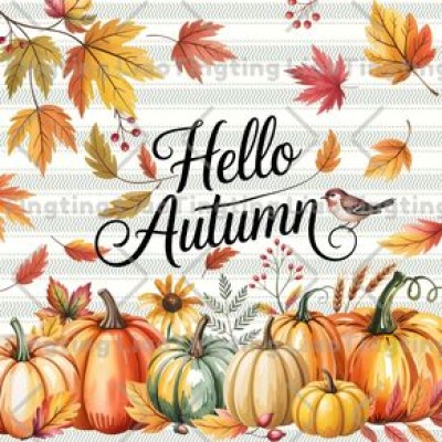 Striped,Autumn,Pumpkin,Thanksgiving,Watercolor,Leaf,Jam,Letter Hello Autumn