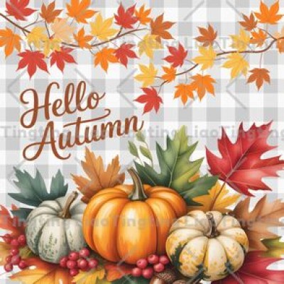 Plaid,Autumn,Pumpkin,Thanksgiving,Watercolor,Leaves,Jam,Letter Hello Autumn
