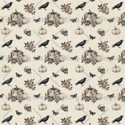 Halloween,Butterfly,Crow,Rose,Pumpkin,Skull,Watercolor,Horror,Linen