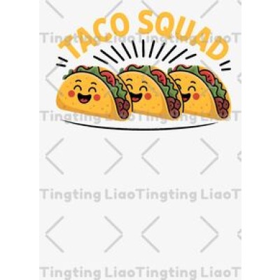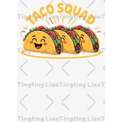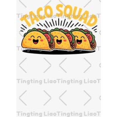 Cartoon Tacos,Text "TACO SQUAD," Cute,Gourmet,Joy