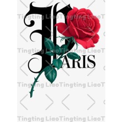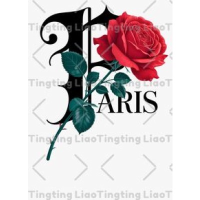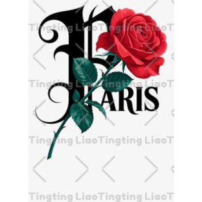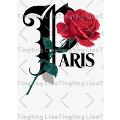 Paris,Rose,Floral Letter,Red Flower,Green Leaf,Romantic