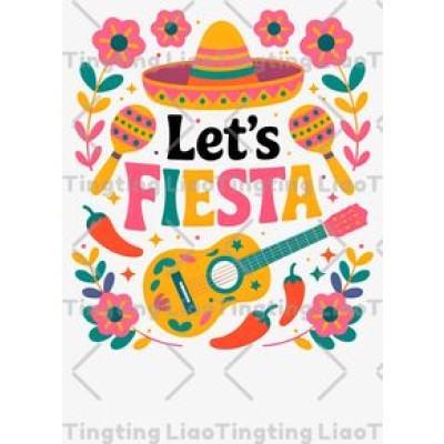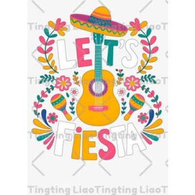 Let's Fiesta,Carnival Party,Guitar,Wide-brimmed Hat,Sand Hammer,Peppers,Flowers,Festival,Mexican Style
