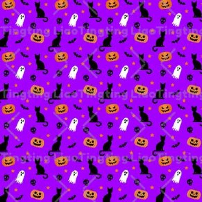 Halloween,Cat,Pumpkin,Ghost,Bat,Stars,Purple Background