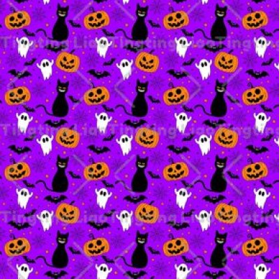 Halloween,Cat,Pumpkin,Spider Web,Ghost,Bat,Stars,Purple Background