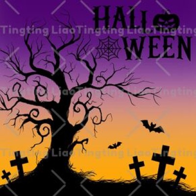 Halloween,Tree,Tombstone,Bat,Pumpkin,Spider Web,Text,HALLOWEEN,Gradient