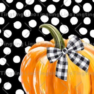 Thanksgiving Day,Autumn,Watercolor,Polka Dot,Orange Pumpkin,Bow