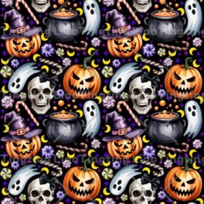 Halloween,Stars,Moon,Pumpkin,Skeleton,Bow,Candy,Ghost,Cute,Black Background