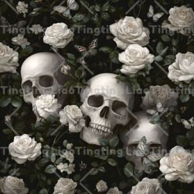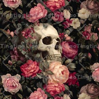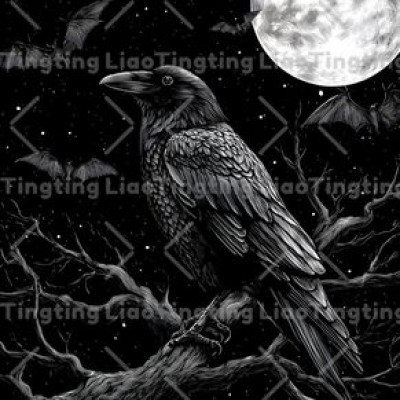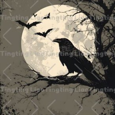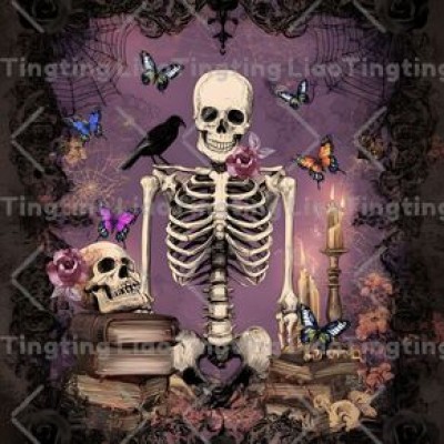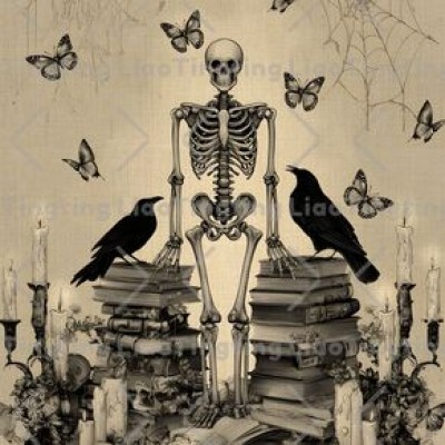Skull,Crow,Book,Candle,Butterfly,Horror,,Retro