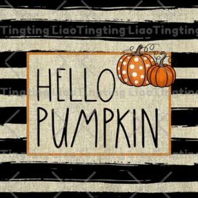 Autumn,Thanksgiving,Orange Pumpkin,Linen Bottom,Black Stripe Hello,Pumpkin