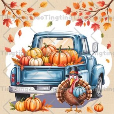 Autumn,Thanksgiving,Turkey,Pumpkin,Truck,Maple Leaf,