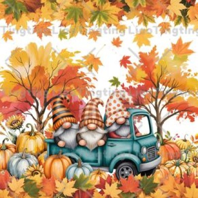 Thanksgiving,Autumn,Gnome,Pumpkin,Wood Grain,Leaves,Truck,Watercolor,Country