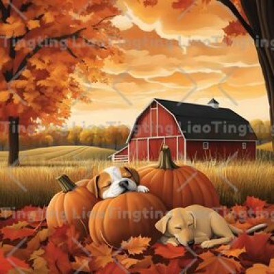 Autumn,Thanksgiving,Pumpkin,Animal,Dog,Barn,Watercolor,Country
