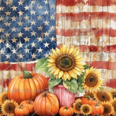 Autumn,Thanksgiving,Country,Pumpkin,Stars And Stripes,Watercolor Style,Flowers,Sunflower