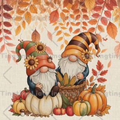 Autumn,Thanksgiving,Country,Watercolor Style,Gnome,Pumpkin,Retro