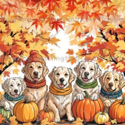 Autumn,Country,Pumpkin,Animal,Puppy,Watercolor Style,Maple Leaf