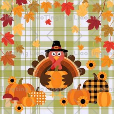 Autumn,Thanksgiving,Turkey,Sunflower,Pumpkin,Plaid,Maple Leaf