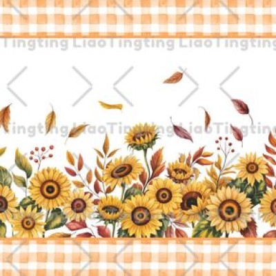 Autumn,Thanksgiving,Country,Watercolor Style,Flower,Sunflower,Plaid