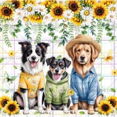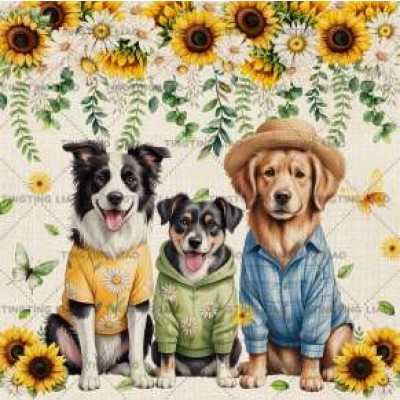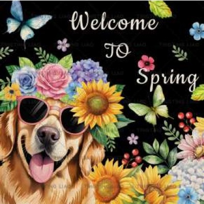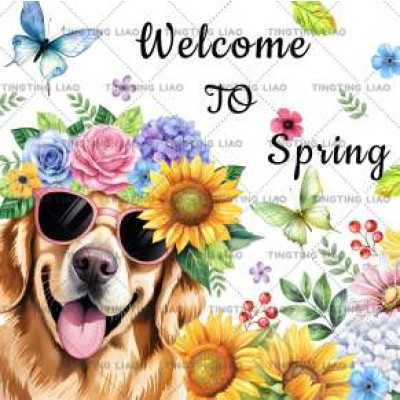 Spring,Dogs,Flowers,Sunflowers,Roses,Embroidered Balls,Butterflies,Watercolors,Text