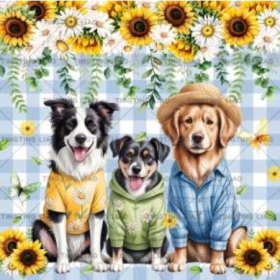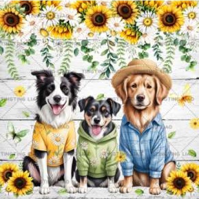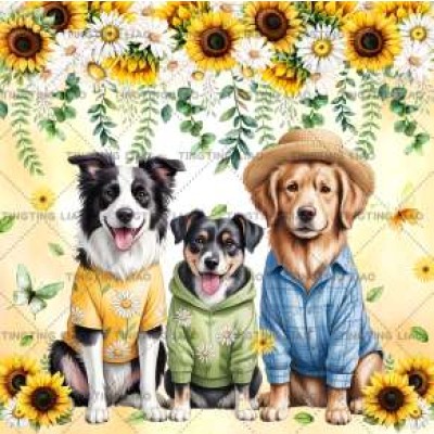 Spring,Dogs,Sunflowers,Daisy,Leaves,Watercolor,Fields,Jam