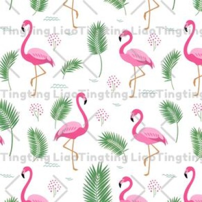Summer,Pink Flamingos,Green Tropical Leaves,Palm Trees
